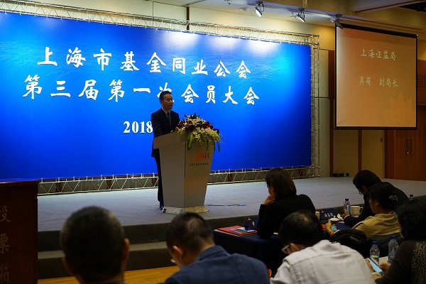 会议最后,上海证监局吴萌副局长作重要发言。他充分肯定了公会在过去一年的工作成效,同时对公会工作提出了新的要求。他表示,上海基金业持续稳定发展离不开合规风控,守住不发生系统性风险是党的十九大提出的重要任务,依法从严监管态势将持续保持,希望新一届公会再接再厉,深度思考提升合规风控有效手段和措施,充分发挥自律能力,为资本市场长远发展保驾护航。同时,吴萌副局长指出,2018年市场环境依然严峻,希望各会员单位全面落实《投资者适当性管理办法》,加强投资者教育,把保护投资者权益放在重中之重。他表示,基金业发展离不开主动探索新形势,发展新道路。在资本市场新形势环境下开放格局将逐步确立,金融科技运用不断深化,希望公会继续发挥上海基金业与政府间的桥梁作用,积极为会员的业务开拓创造条件,提升从业人员业务技能和执业水平,推动上海基金业持续稳定发展。