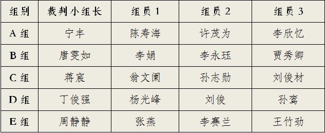 第一阶段小组赛各小组裁判长及执法裁判员名单: