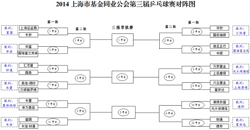2014上海市基金同业公会第三届乒乓球比赛抽签结果揭晓