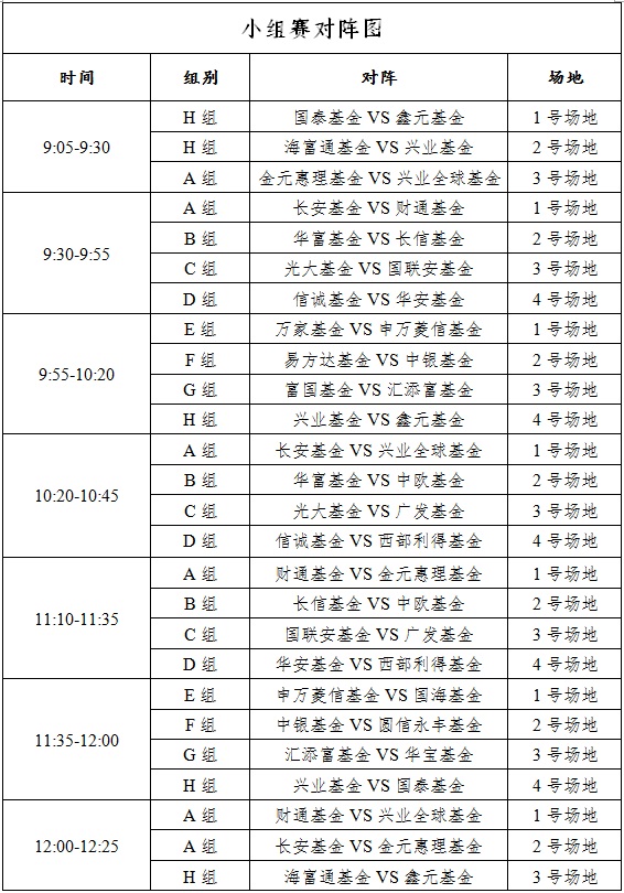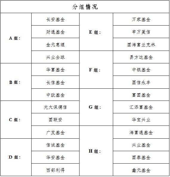 11月28日,上海市基金同业公会第十一届“富国杯”篮球赛领队工作会议召开。会上,26家参赛球队就赛事规则、赛事安排、赛事纪律及其它相关事宜进行了讨论,并达成会议共识。随后,各参赛队队长进行了抽签,26支球队分出8个小组进行小组赛,具体分组情况赛事安排如下: