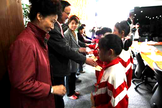 10月27日上午,金色的阳光透过玻璃幕墙洒落在8张稚嫩的小脸上。“我叫张路,现在读四年级,谢谢中海基金的叔叔阿姨们对我们的帮助和关心!尽管我们来自贫困地区,但我们在大上海依然受到重视,得到了很好的教育,我们一定认真学习,将来回报社会……”。捐资助学仪式上, 此次公益行动的受助学生张路感动地说。和其他7名在场小朋友一样,张路是弘梅小学的学生,他们的共同点是:来自于不同省份的乡村,都是农民工子女,品学兼优而家庭生活条件艰难。