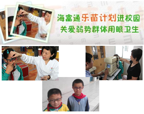 海富通基金全程资助的“根与芽乐苗计划”致力于关心民工子女的健康和卫生教育。为切实解决民工子女的用眼卫生问题,乐苗计划的工作人员协同仁爱医院国际部的专业医生一起,到参与乐苗计划的五所民工小学给三年级和五年级的学生验光、配眼镜。