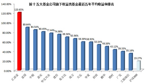 120.65%,以领先第二名超过30个百分点的优势,继续位居前十五大基金公司整体股票投资业绩冠军,同期沪深300涨幅仅为19.27%!