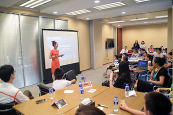 活动的第一部分,长安基金市场营销部副总经理曹玫女士向在场的家长及孩子们介绍基金公司的日常基本运作情况。长安宏观策略混合基金的基金经理栾绍菲先生则与到场来宾进行投资心得的交流与互动。