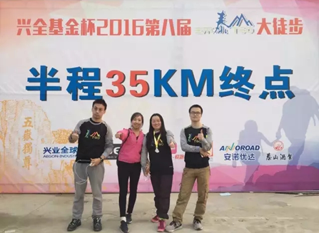 其中,公司董秘徐天舒以7小时05分钟第48名的成绩领先完成60公里徒步;公司总经理杨东带队,14位兴全员工完成了35公里徒步,其中最快的一位仅用了5小时!值得一提的是,公司副总经理杨卫东带伤上阵走完了35公里,而兴全睿众总经理涂娟在完成10公里的路程后一同加入35公里团队最终一同完赛!