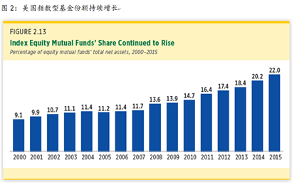 十几年前,基金传统的销售方式是柜台交易,大家到银行去找客户经理,通过银行账户再将钱转给我们基金公司,是由客户通过银行和基金公司形成对手,不像股票,或者场内交易的品种,是买卖双方形成对手。但是2000年之后,资本市场创造出一个比较伟大的品种叫做 ETP(Exchange Traded Product),在中国我们称为ETF,因为我们是把Fund(基金)做成了可以挂牌交易的份额。挂牌交易之后,这种产品就实现了再次的网络化,原来是通过银行的柜台交易网络,现在到了交易所这样一个庞大的汪洋大海的市场,增长非常迅猛。2008年时,ETP在美国市场是13.65万亿,在2008年金融危机之后,大多数的资产类别、各类基金实际上是一个资金净流出的状态,只有ETF在持续增长的,到2015年时达到将近22万亿的规模,同时在整个美国公募基金市场里大约占到了将近12%的份额。