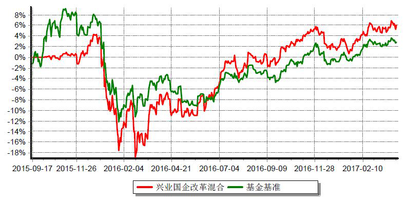 兴业国企改革灵活配置混合型证券投资基金累计净值增长率与同期业绩比较基准收益率历史走势对比图