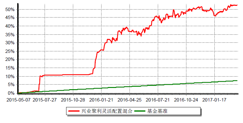兴业聚利灵活配置混合型证券投资基金累计净值增长率与同期业绩比较基准收益率历史走势对比图