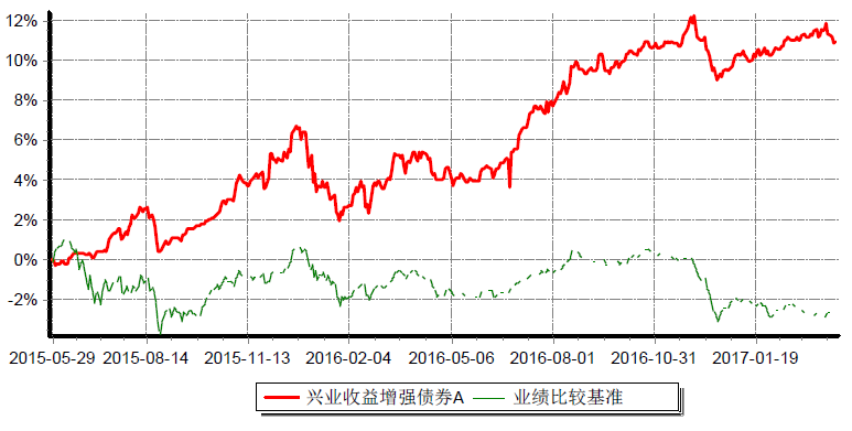 兴业收益增强债券A累计净值增长率与同期业绩比较基准收益率历史走势对比图