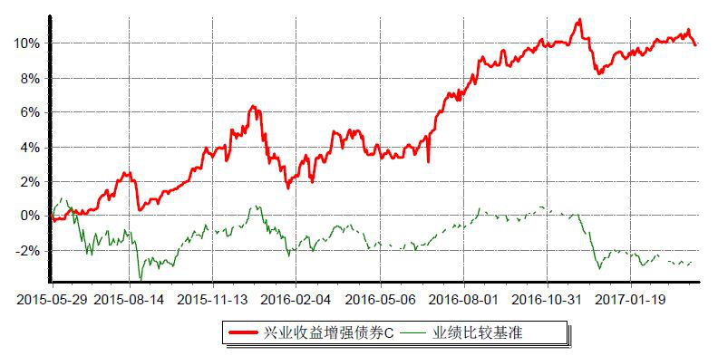 兴业收益增强债券C累计净值增长率与同期业绩比较基准收益率历史走势对比图