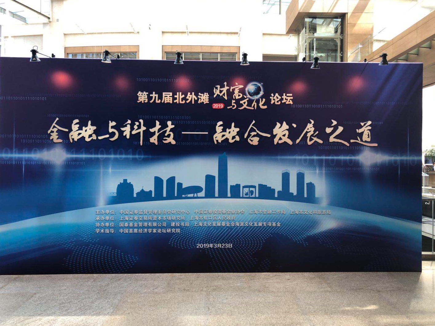3月23日,第九届北外滩财富与文化论坛在上海市虹口区举行。本次论坛主题为“金融与科技——融合发展之道”,论坛由中国证券监督管理委员会研究中心、中国证券投资基金业协会、上海市金融工作局和上海市文化和旅游局主办,上海证券交易所资本市场研究所和上海市虹口区人民政府承办,国泰基金、建投书局共同协办。