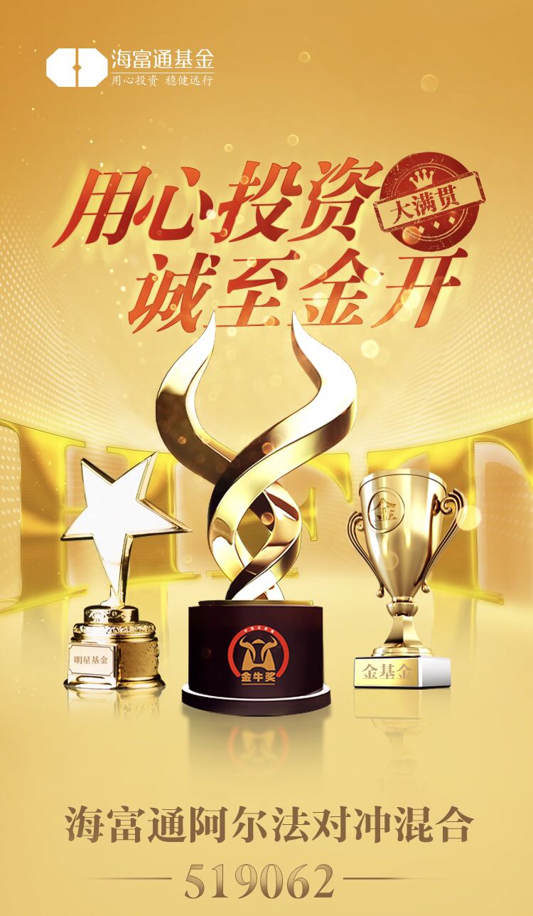 4月14日,海富通阿尔法对冲混合继续摘得由《中国证券报》颁发的“三年期开放式混合型持续优胜金牛基金”奖。