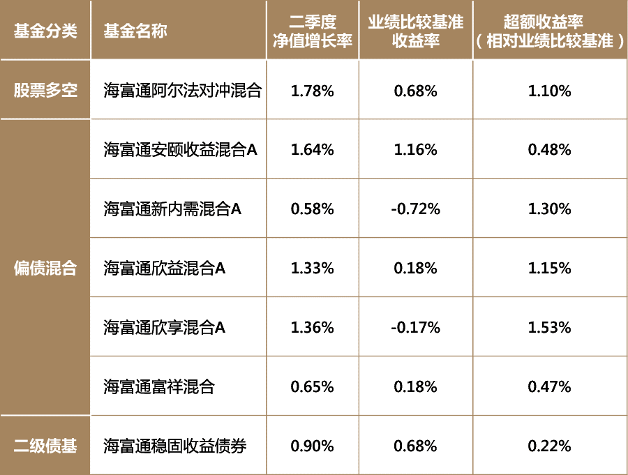 二季报显示,截至今年6月30日,海富通“固收+”战队七只主力产品二季度收益全部为正,且全部跑赢业绩比较基准。