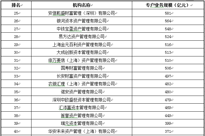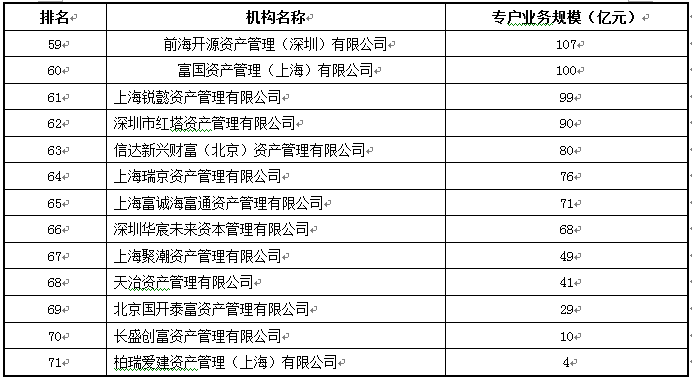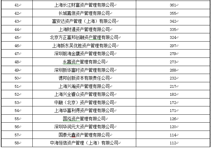 注:排名仅列示了管理规模非零的公司的数据。