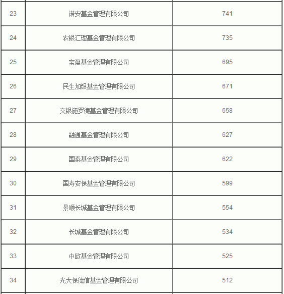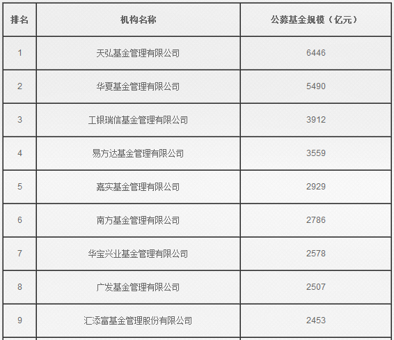 公募基金规模排名(2015年9月底)