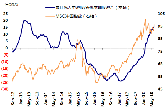 股市流动性充裕,香港市场资金持续南下,自2017年2月,共计390亿美元资金流向中资股/香港本地股市场。